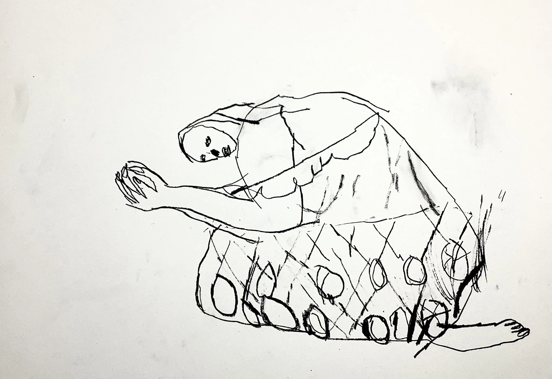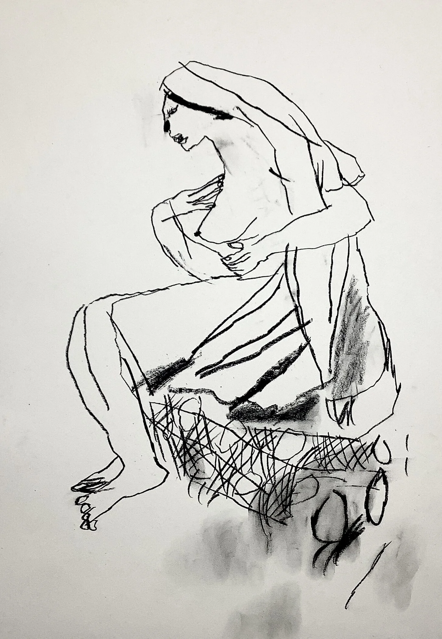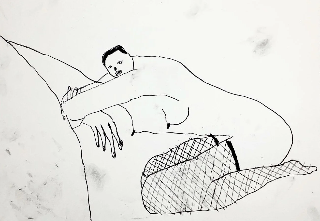 Life drawing fish net stockings by Artist Tracey Slater