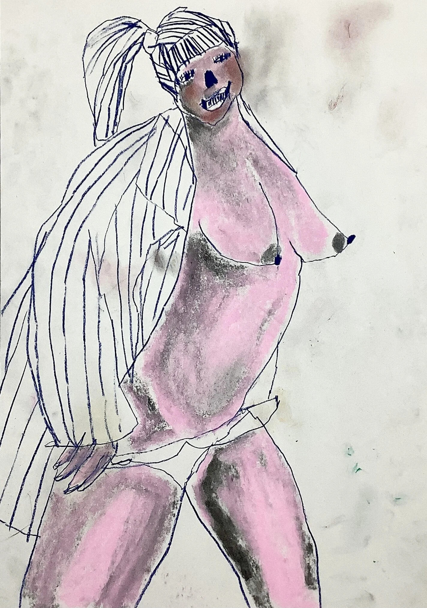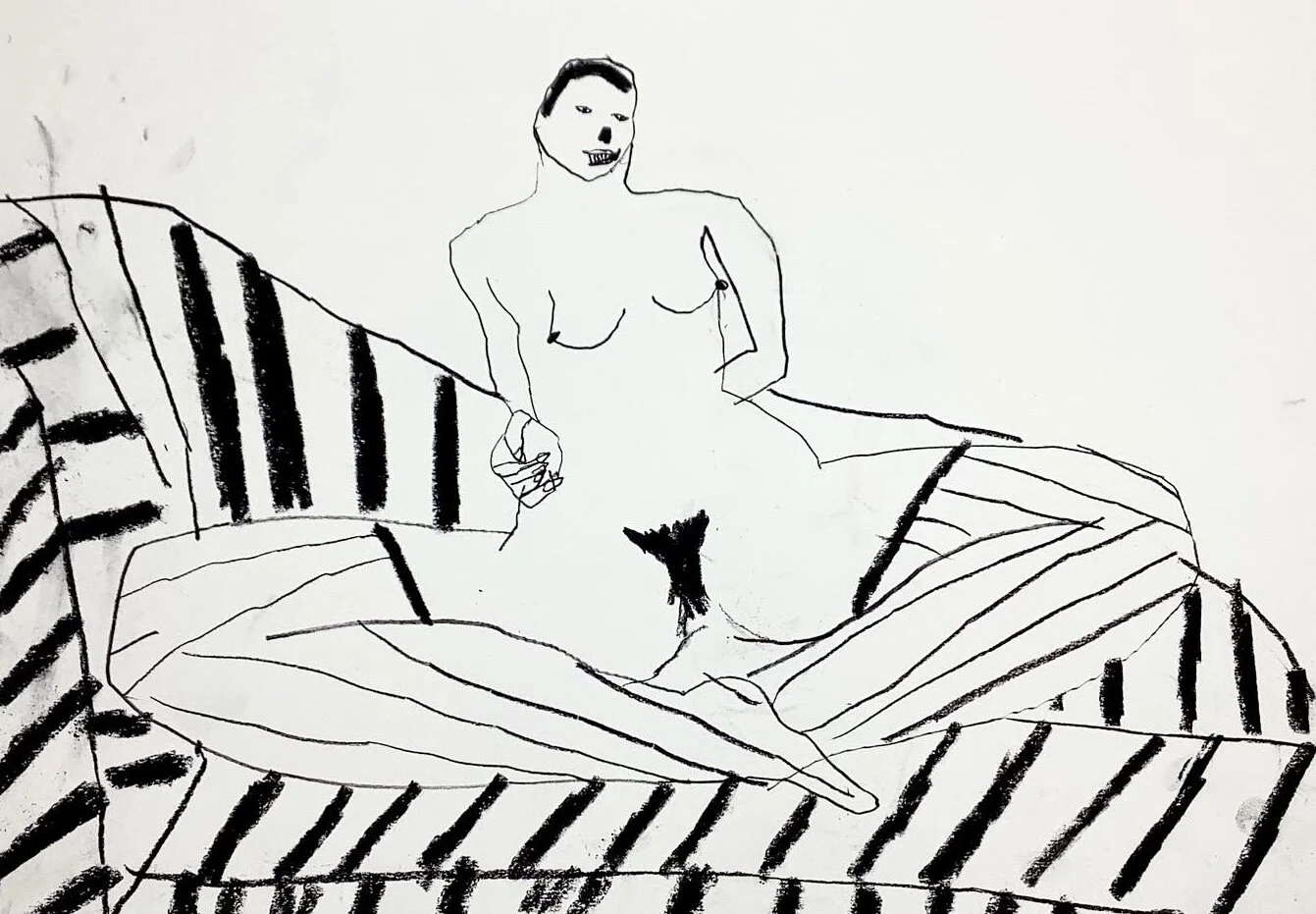 Life drawing on stripy sofa by Tracey Slater