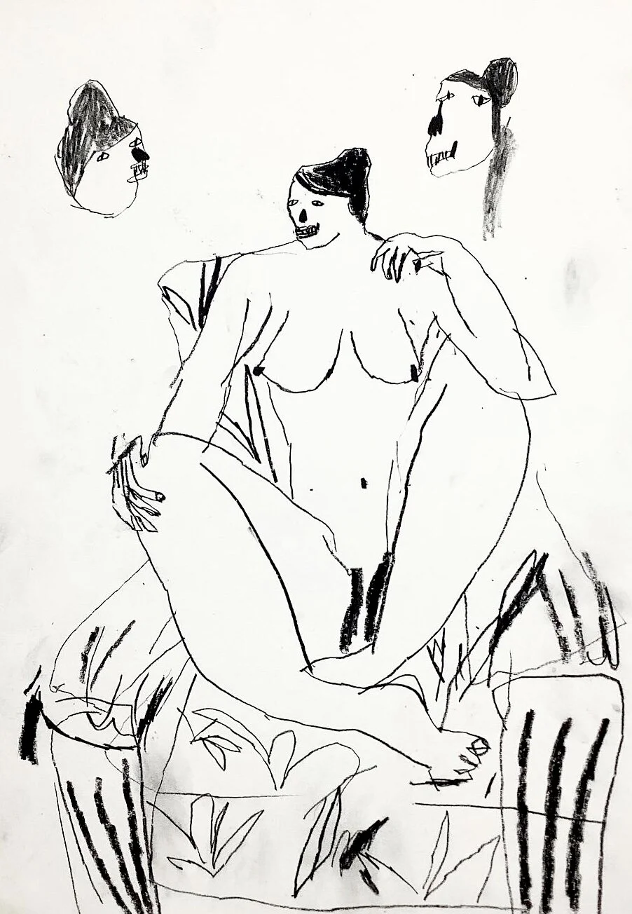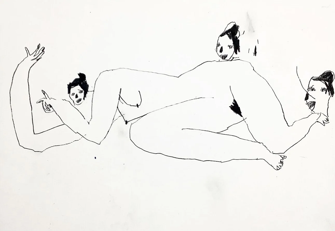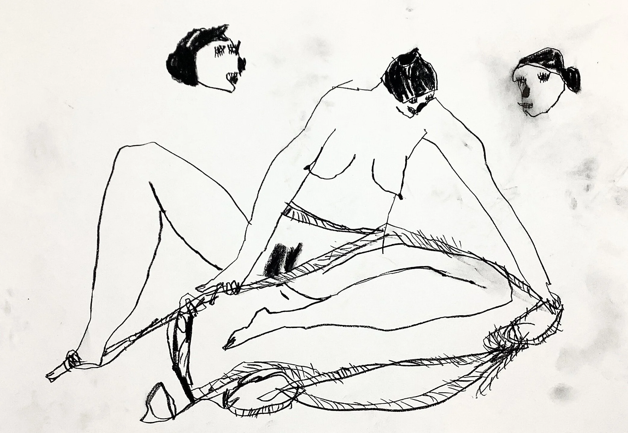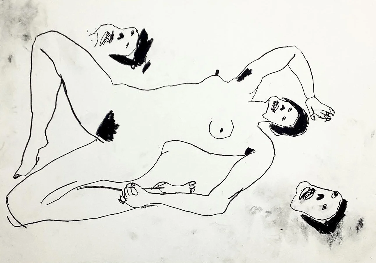 Nude woman life drawing with faces by Artist Tracey Slater