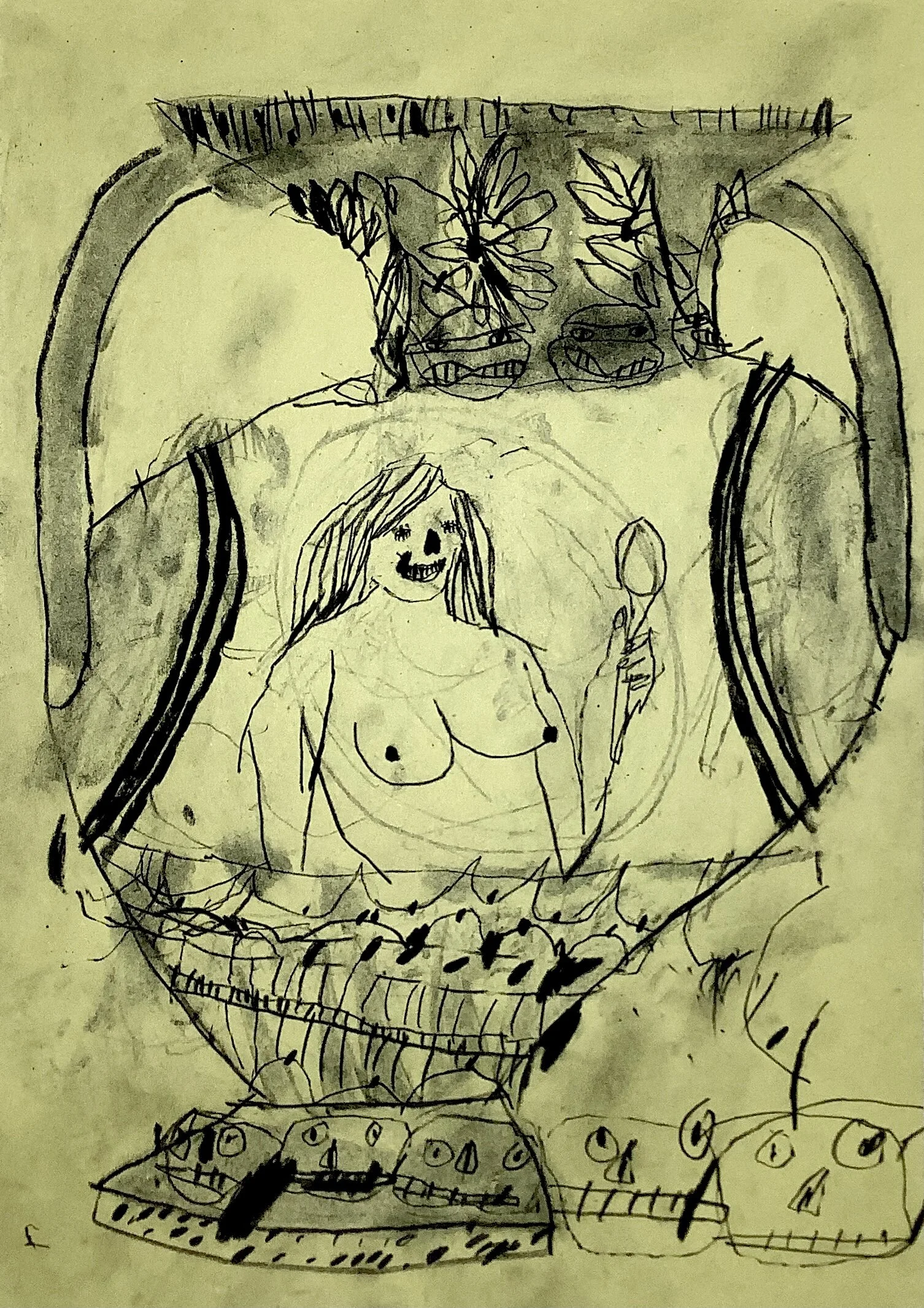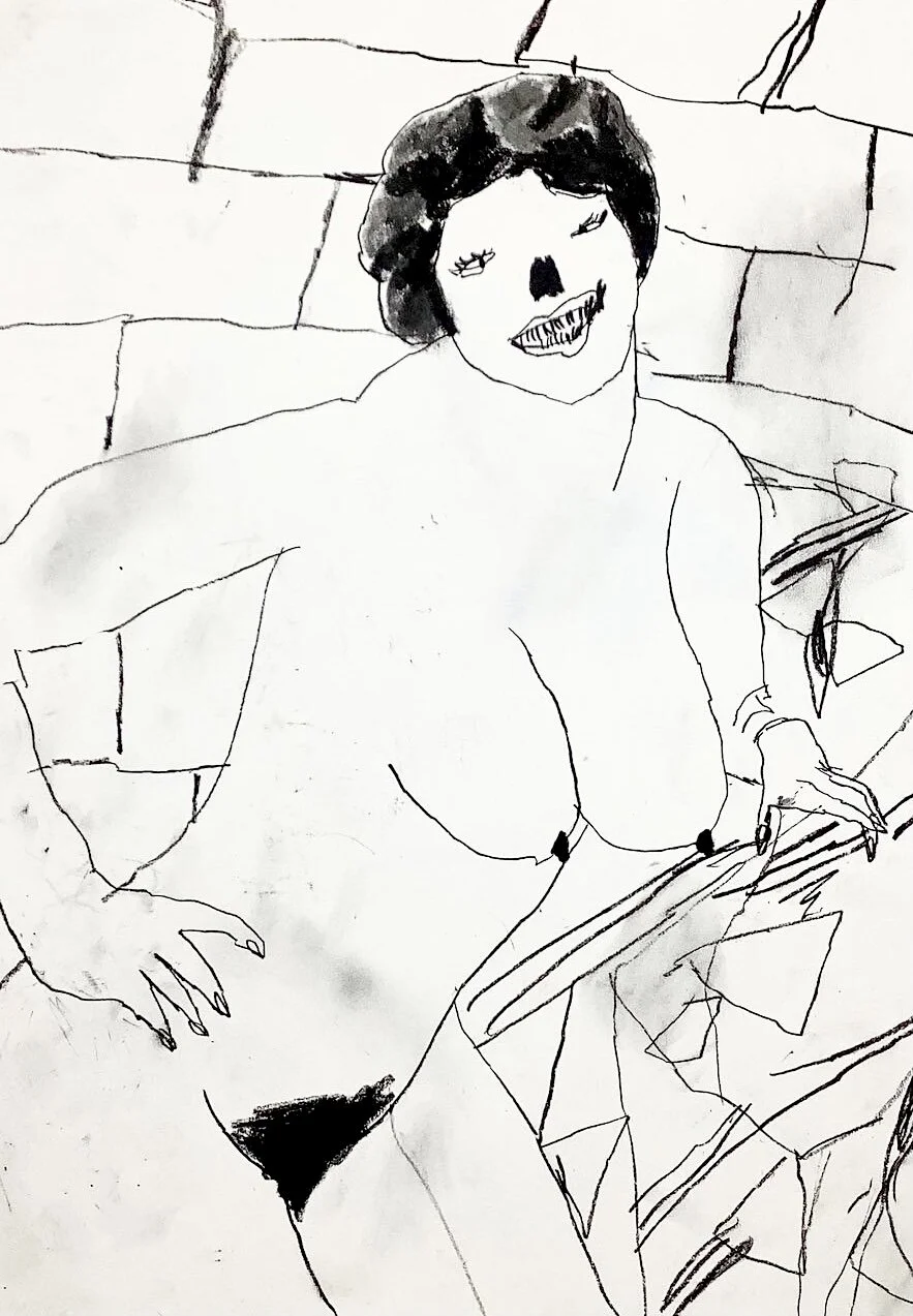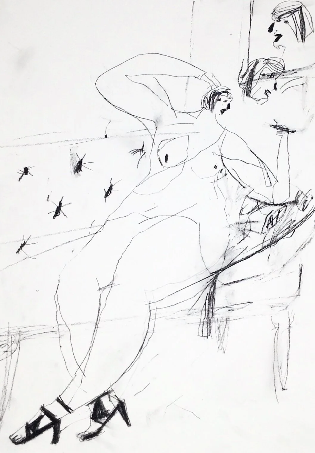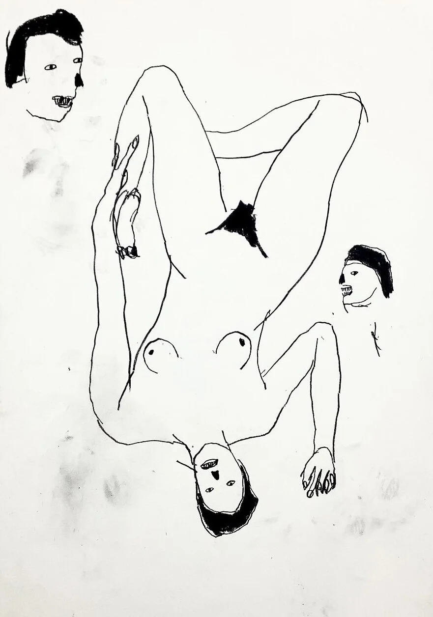 Nude woman life drawing with faces by Artist Tracey Slater