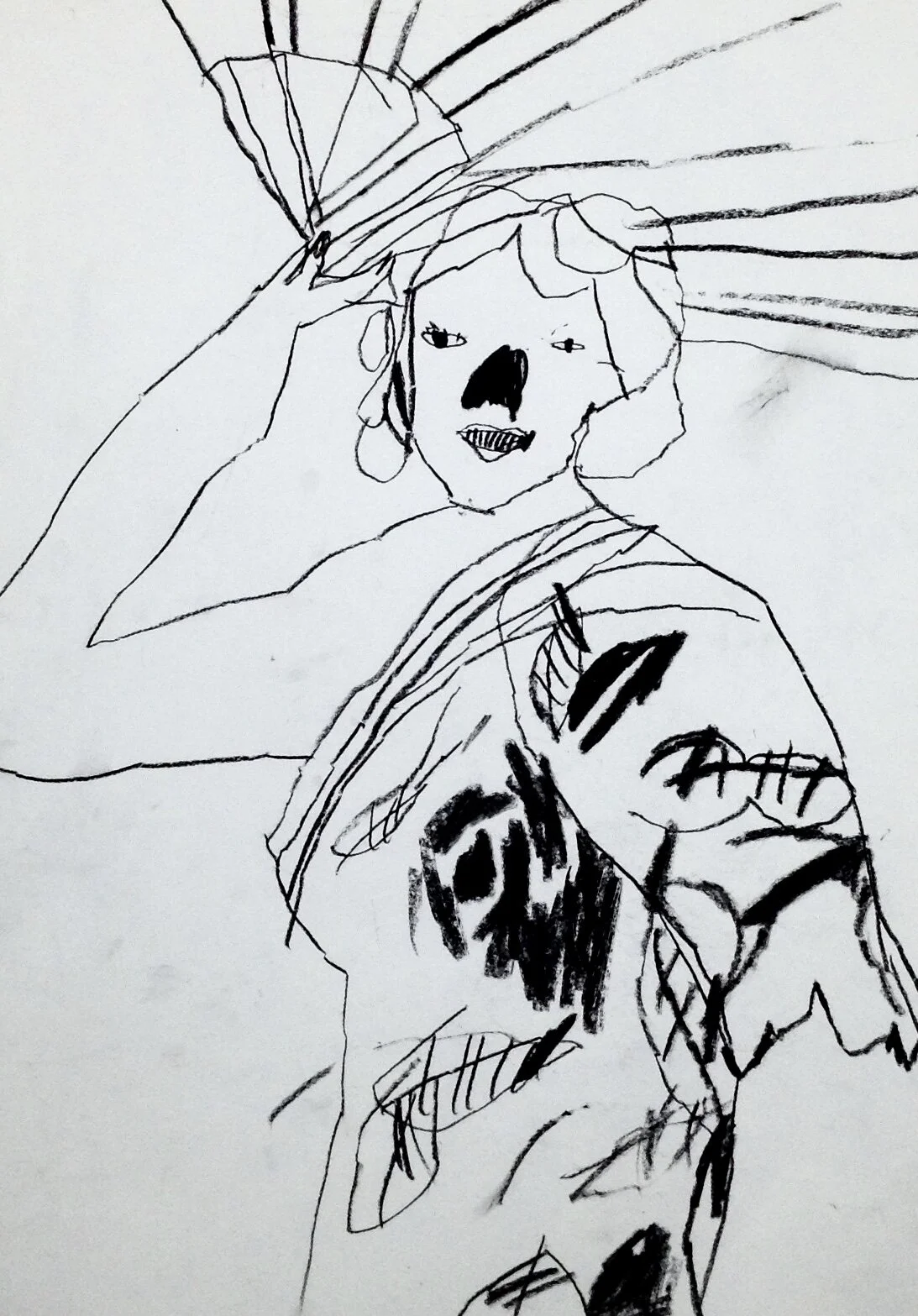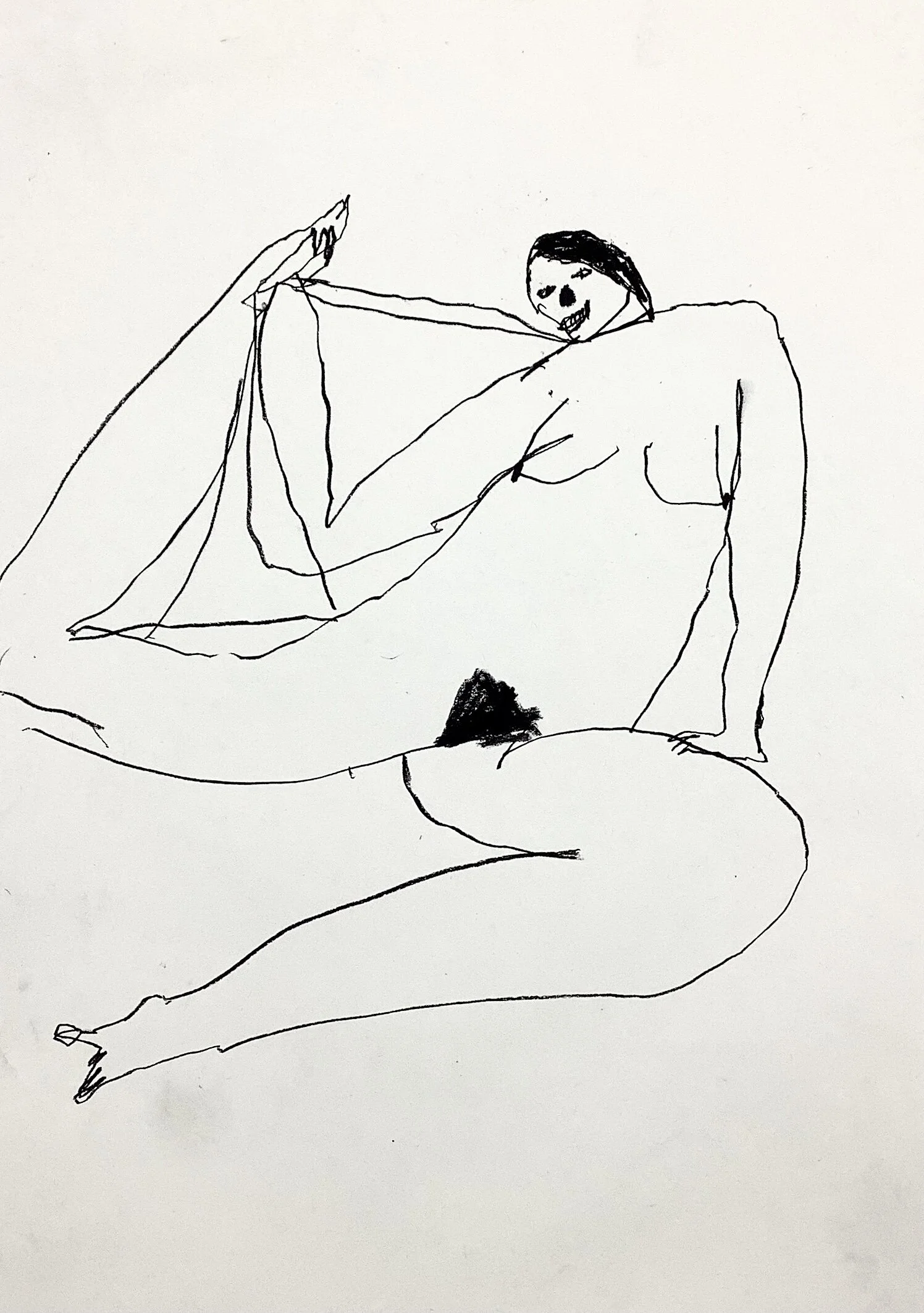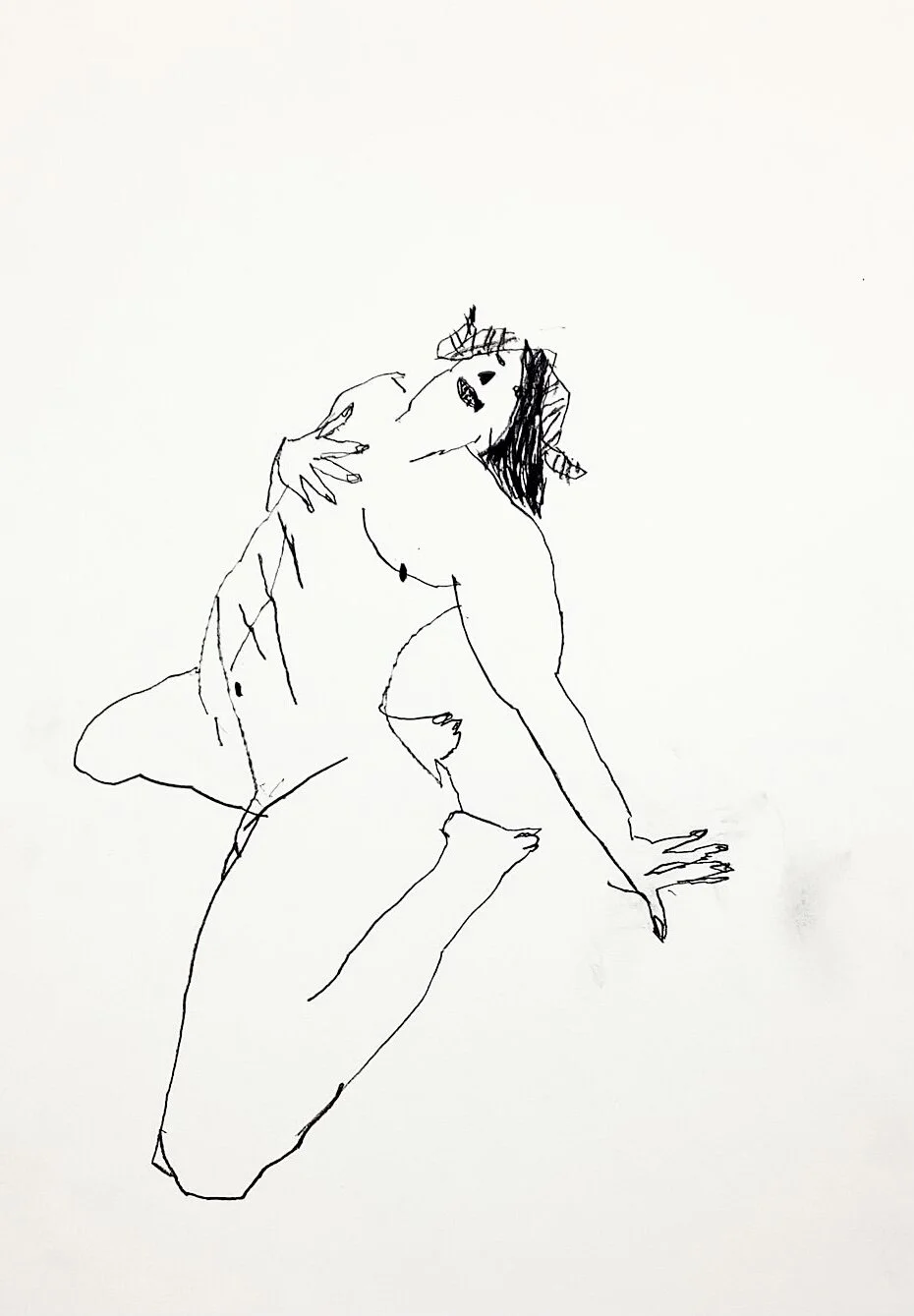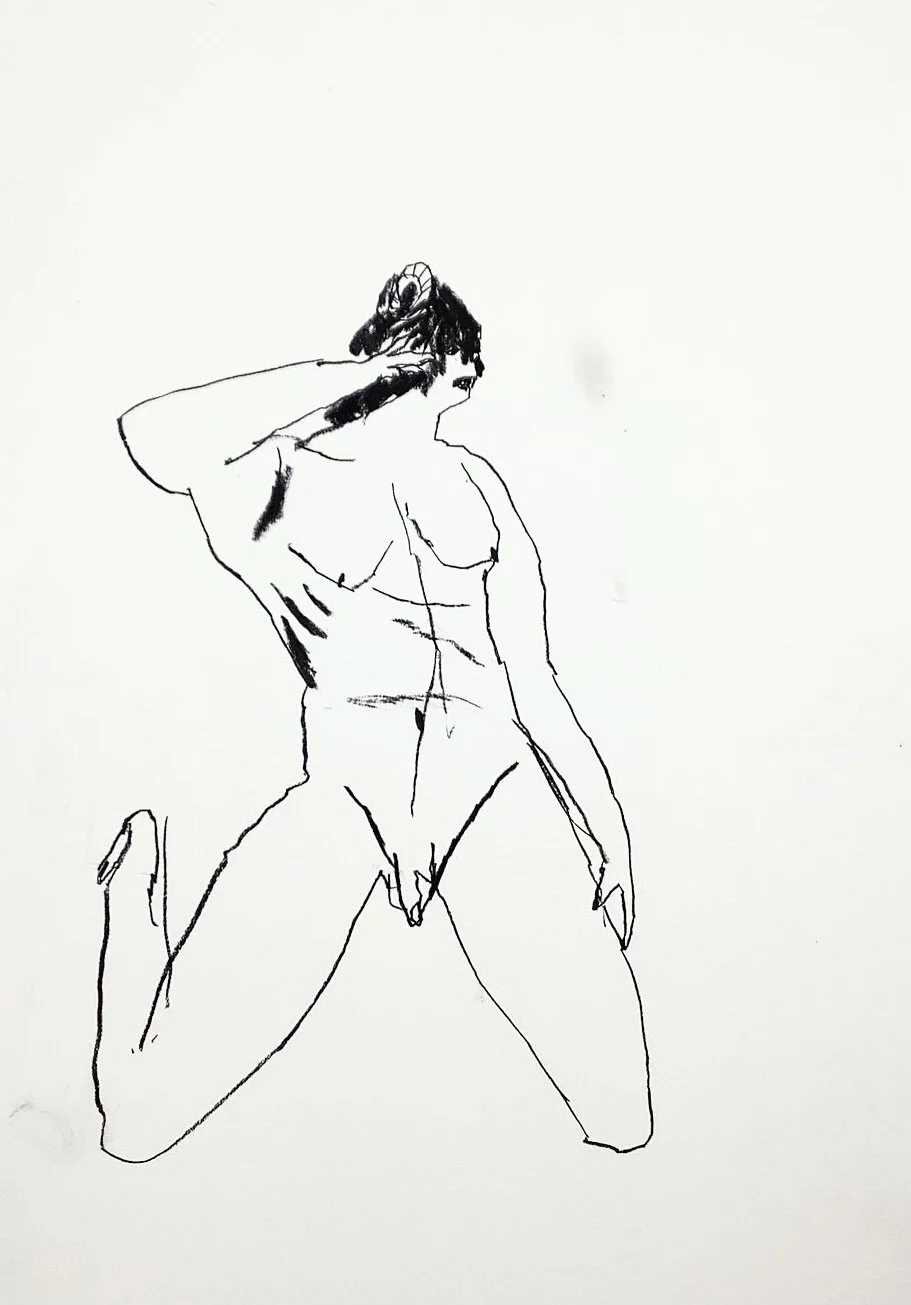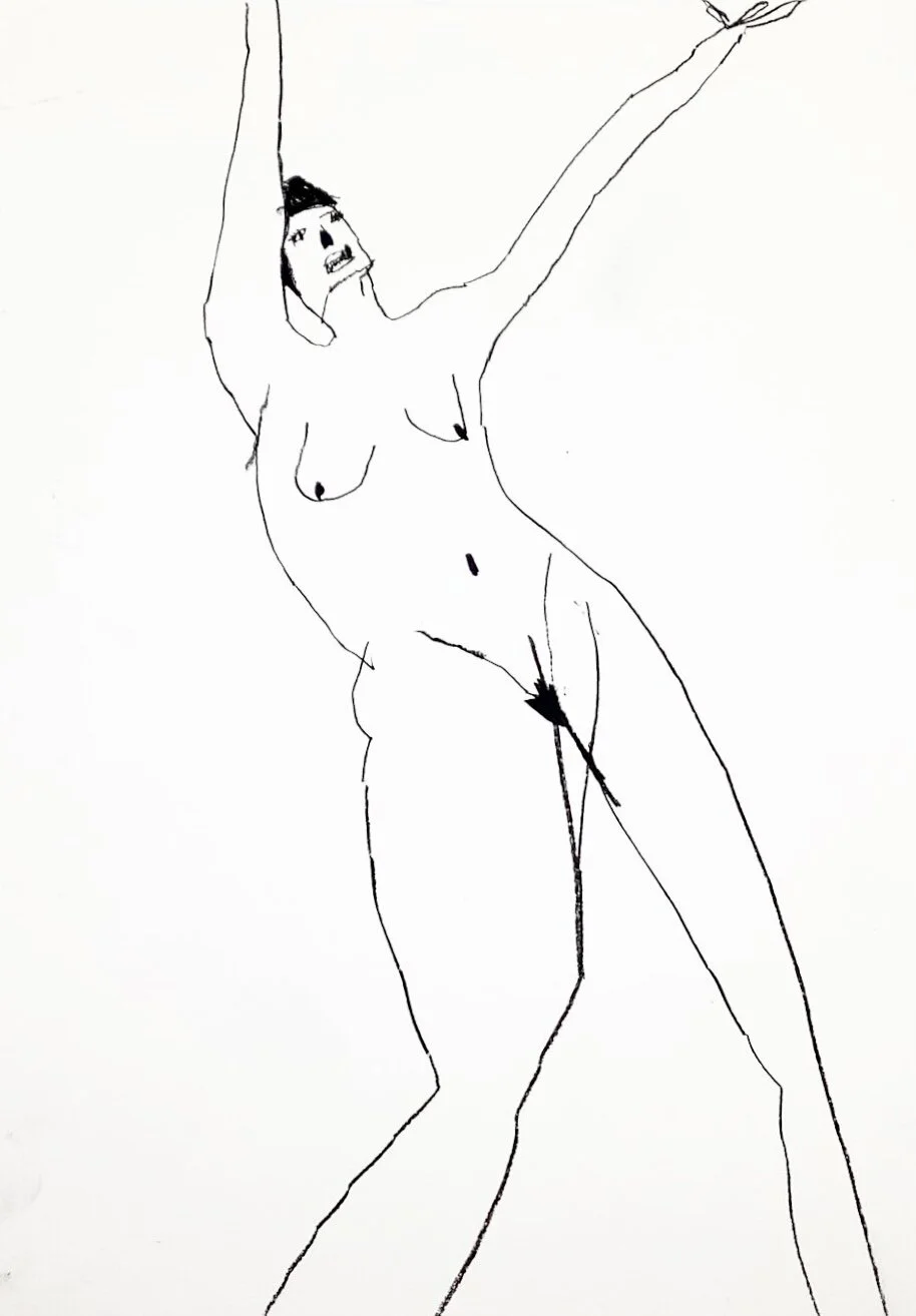 Raised arms dynamic figurative drawing by Tracey Slater