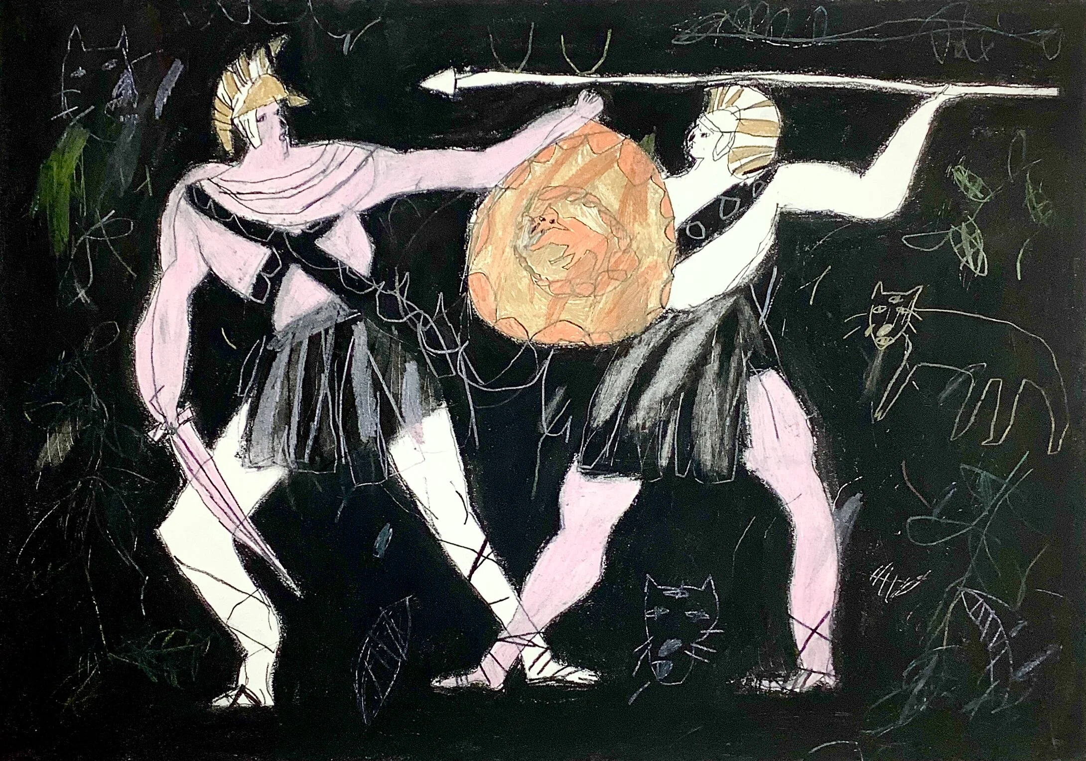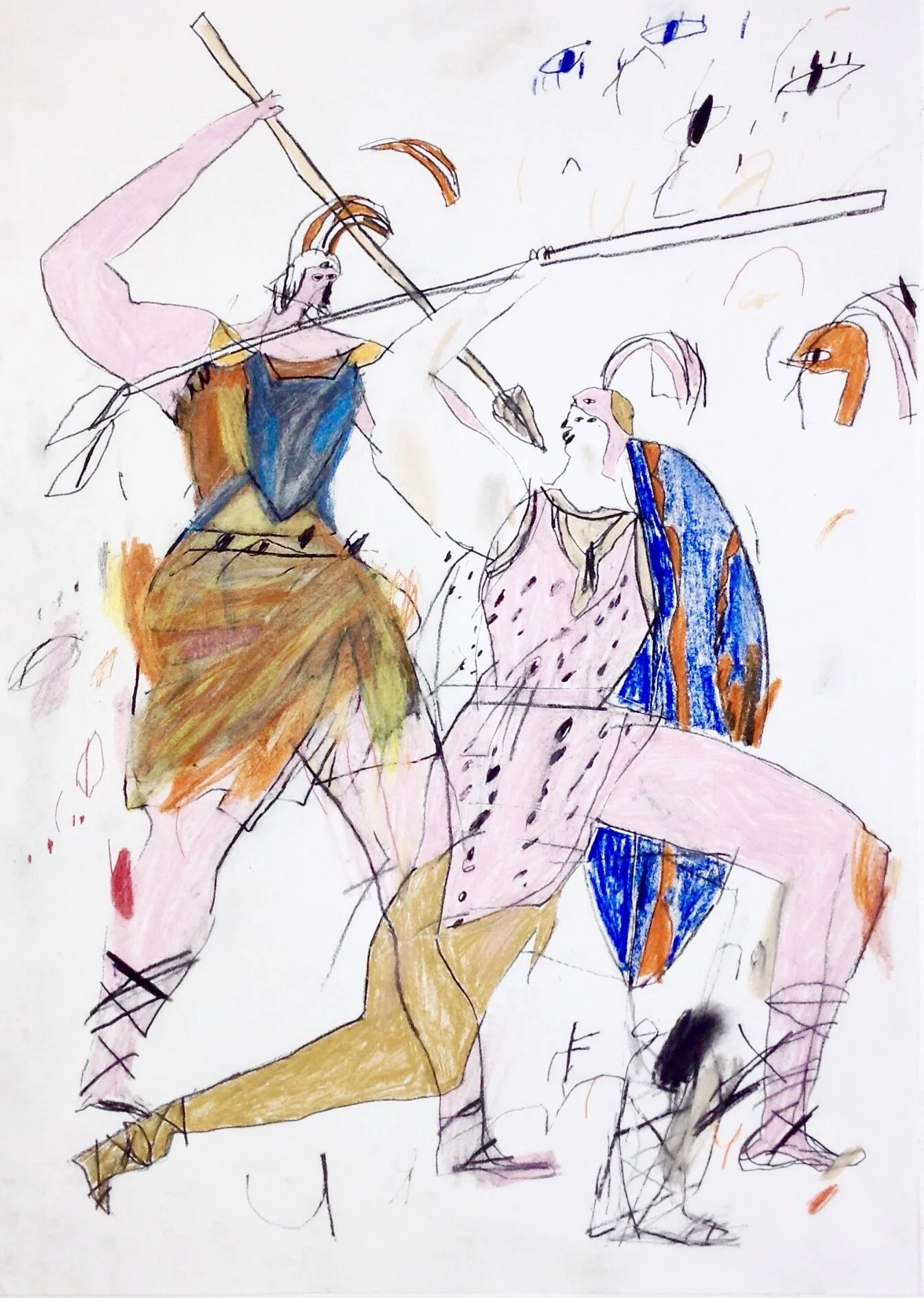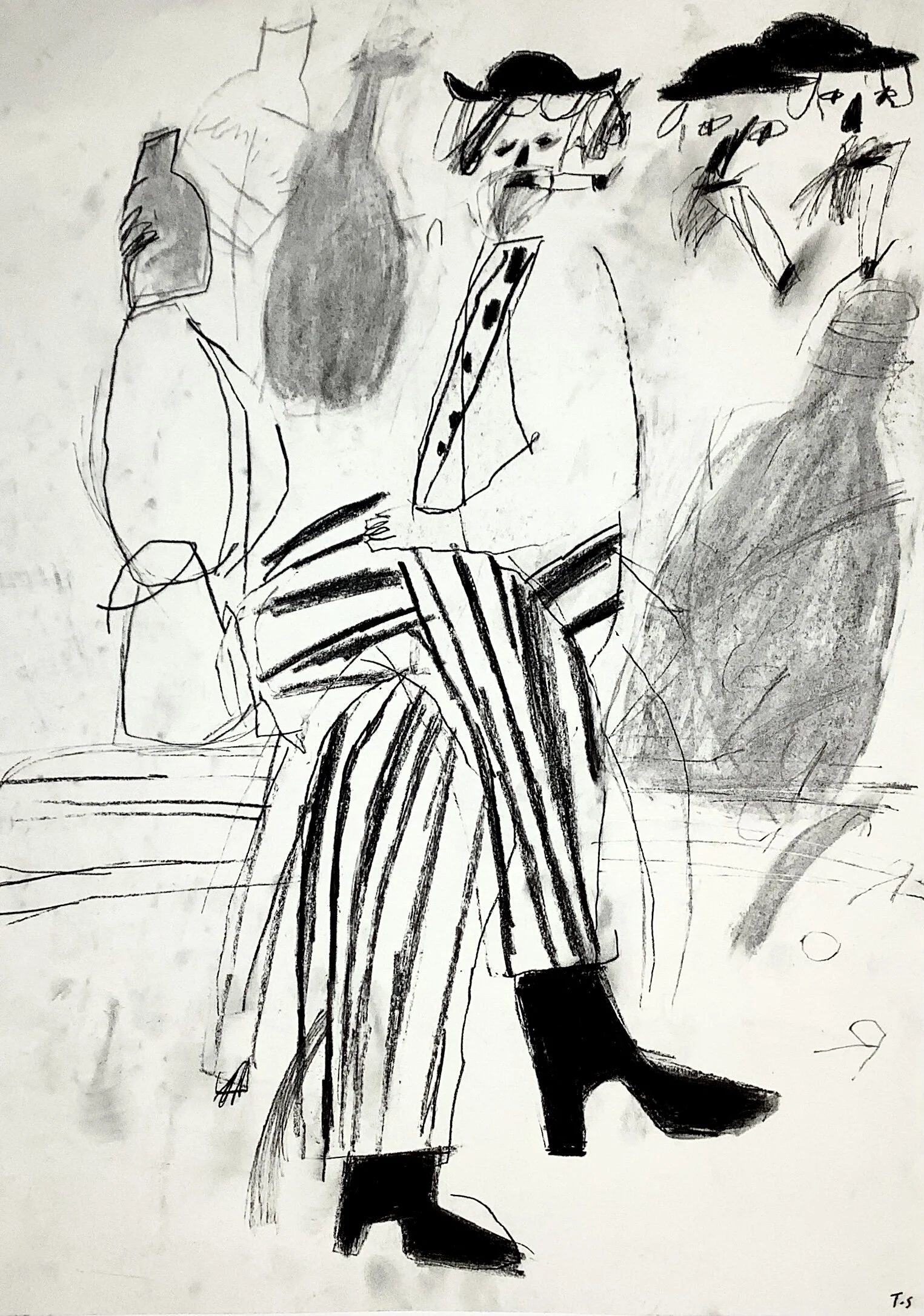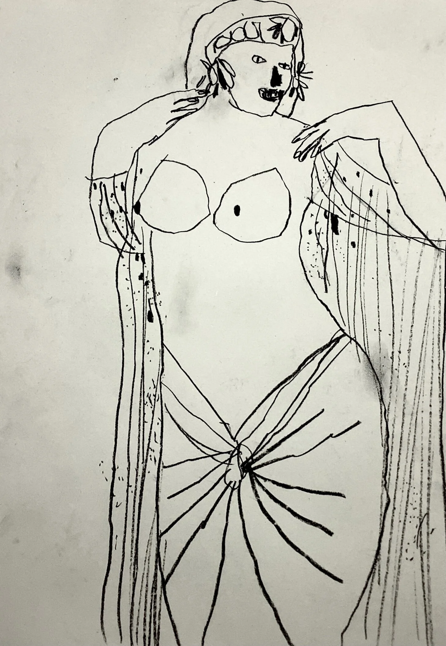 Raised arms dynamic figurative drawing by Tracey Slater
