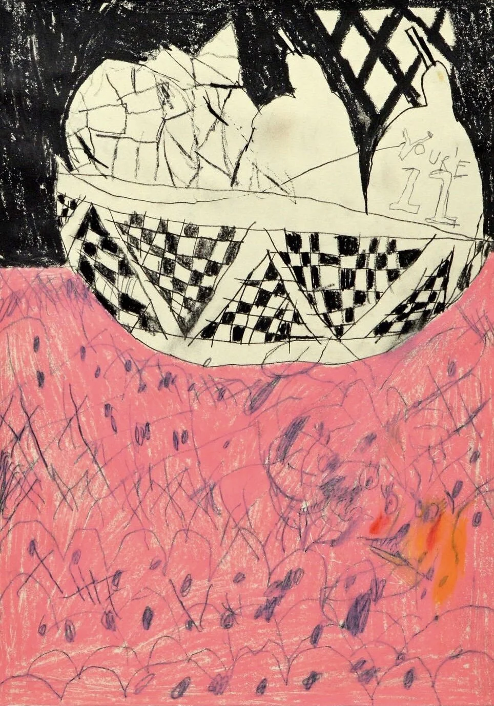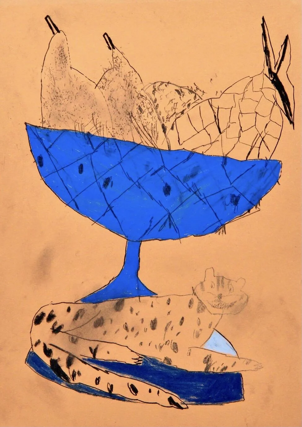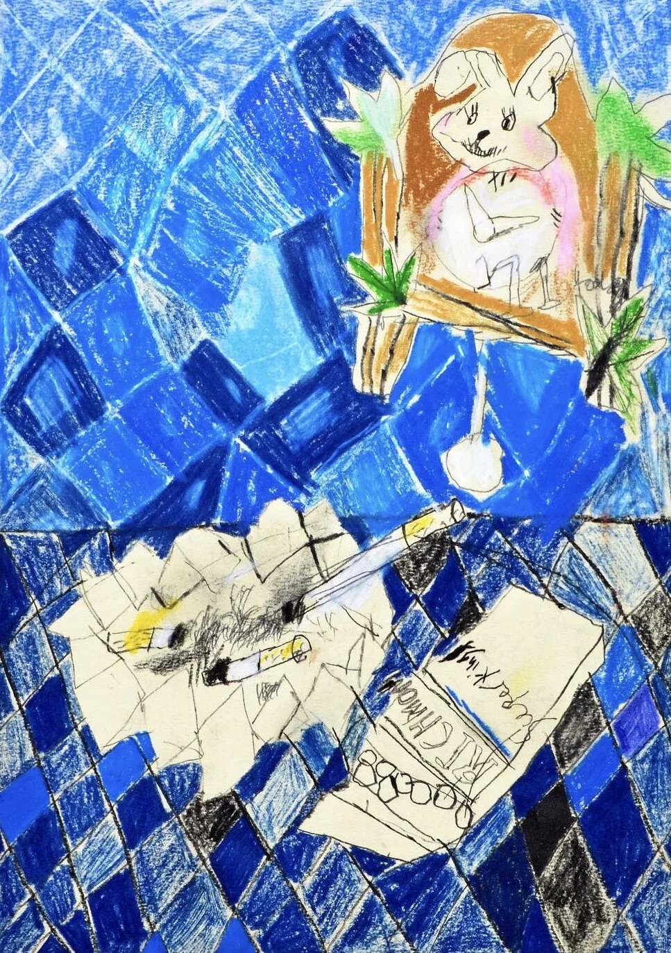 Contemporary drawing of vintage noodle on chair Artist Tracey Slater