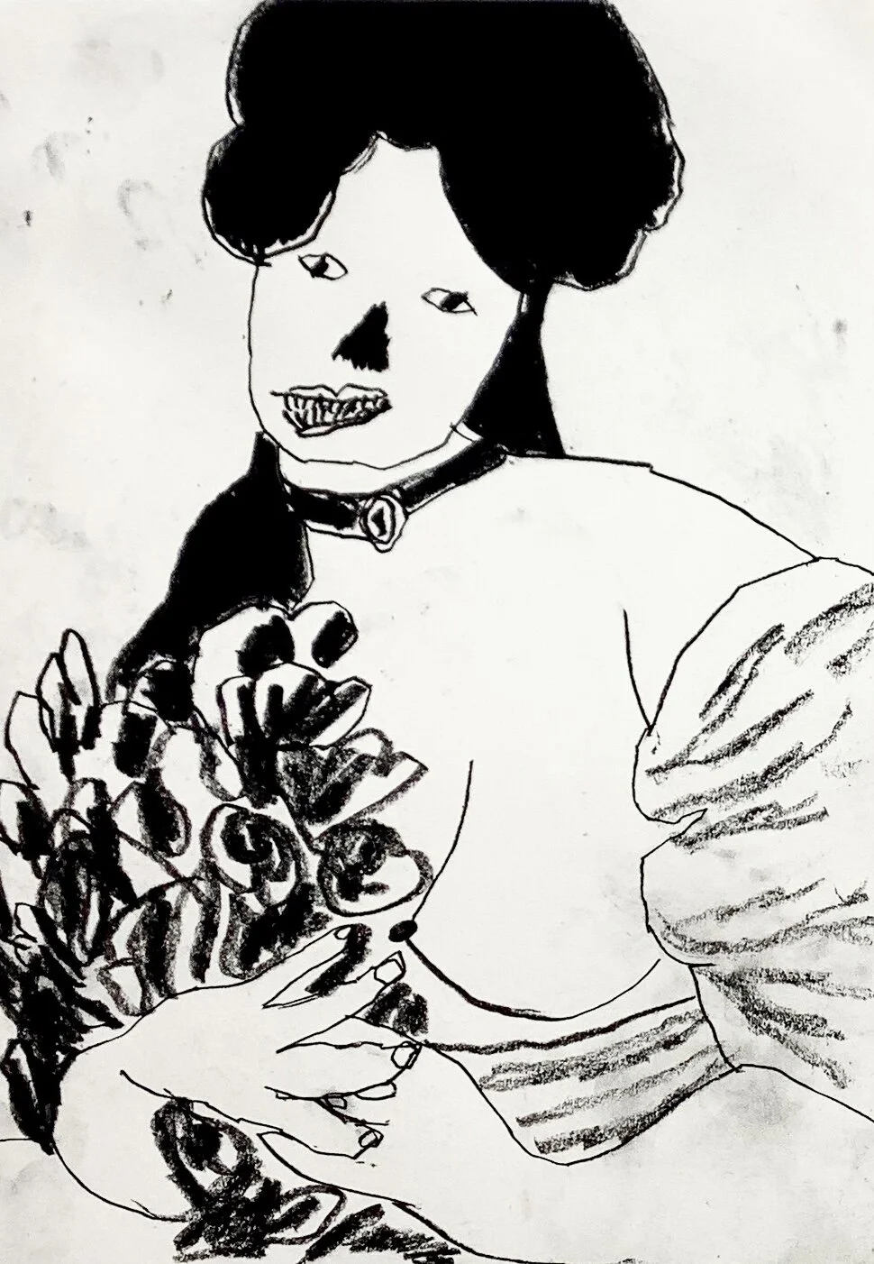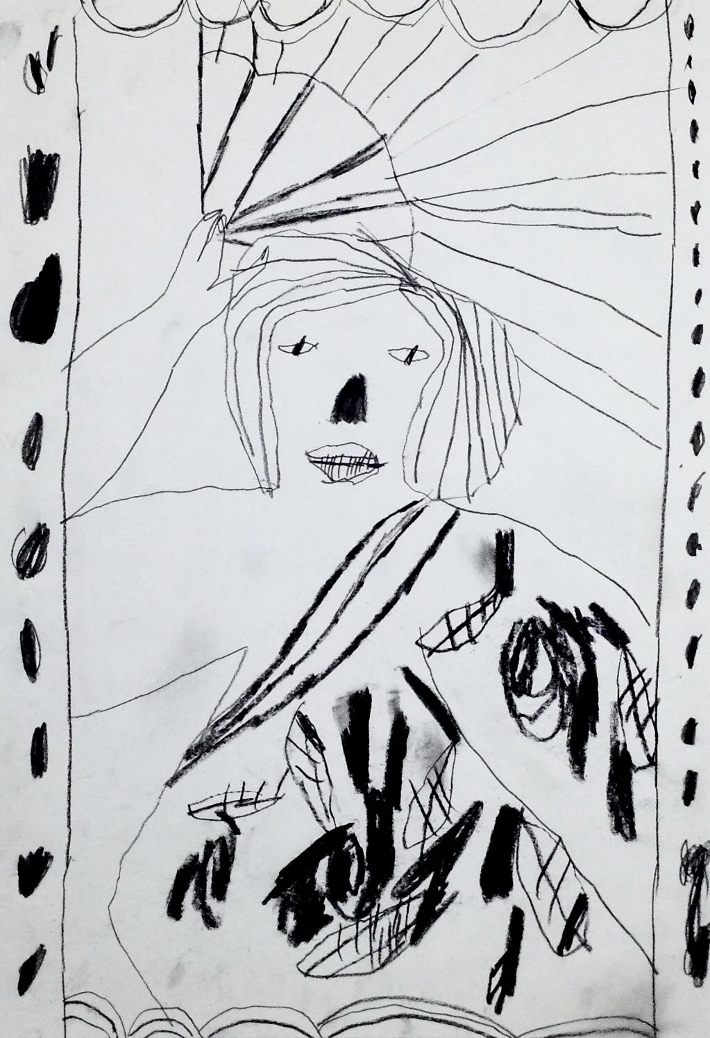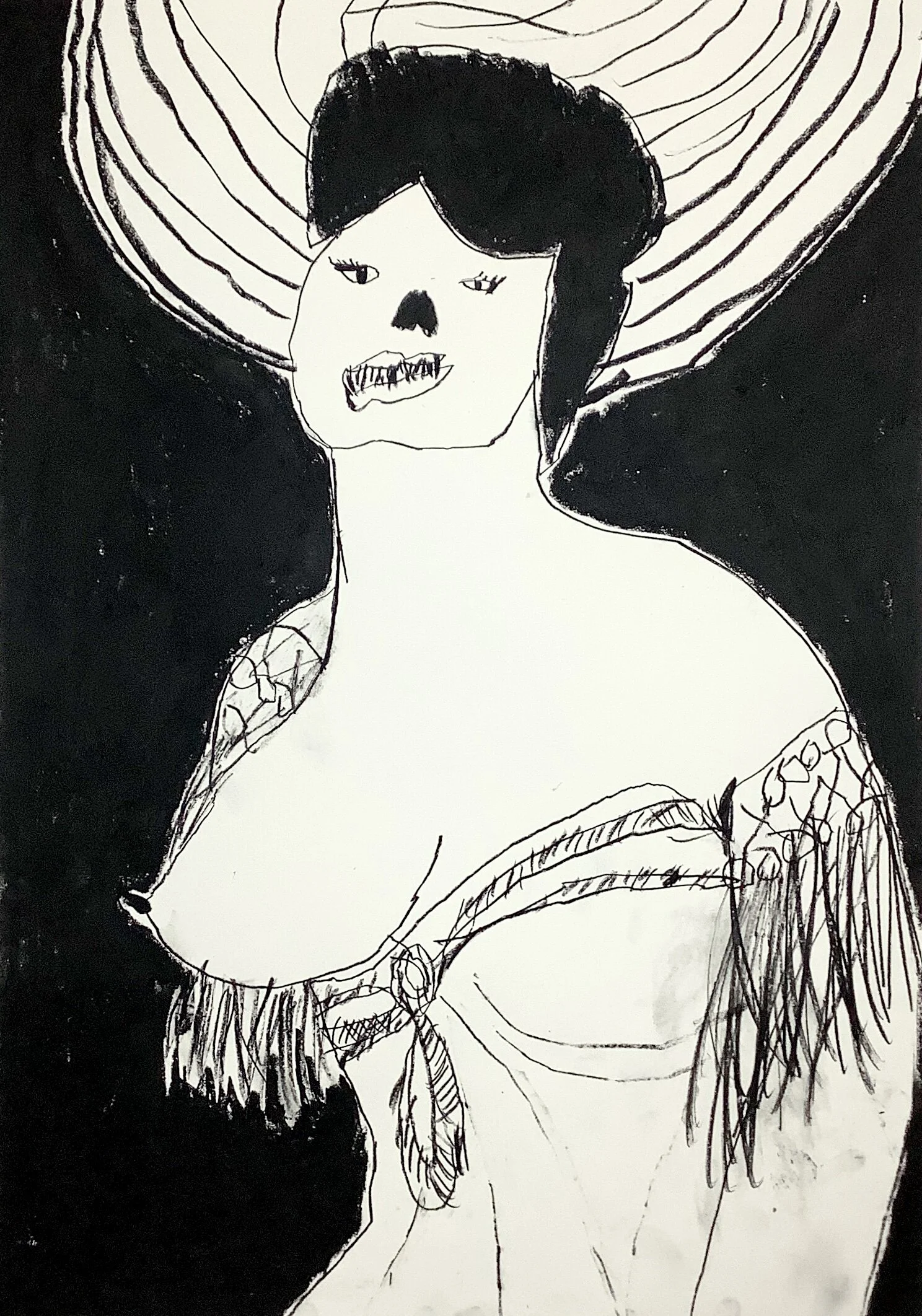 Drawing of vintage woman with fan, Artist Tracey Slater