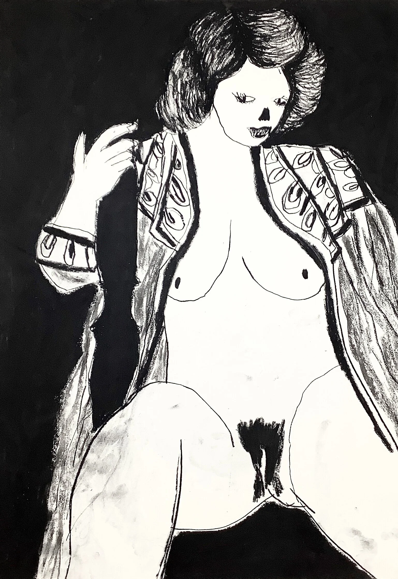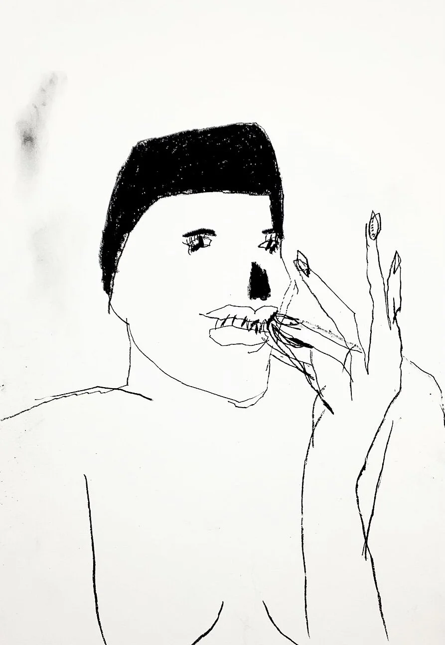 Drawing of woman with leather jacket by artist Tracey slater
