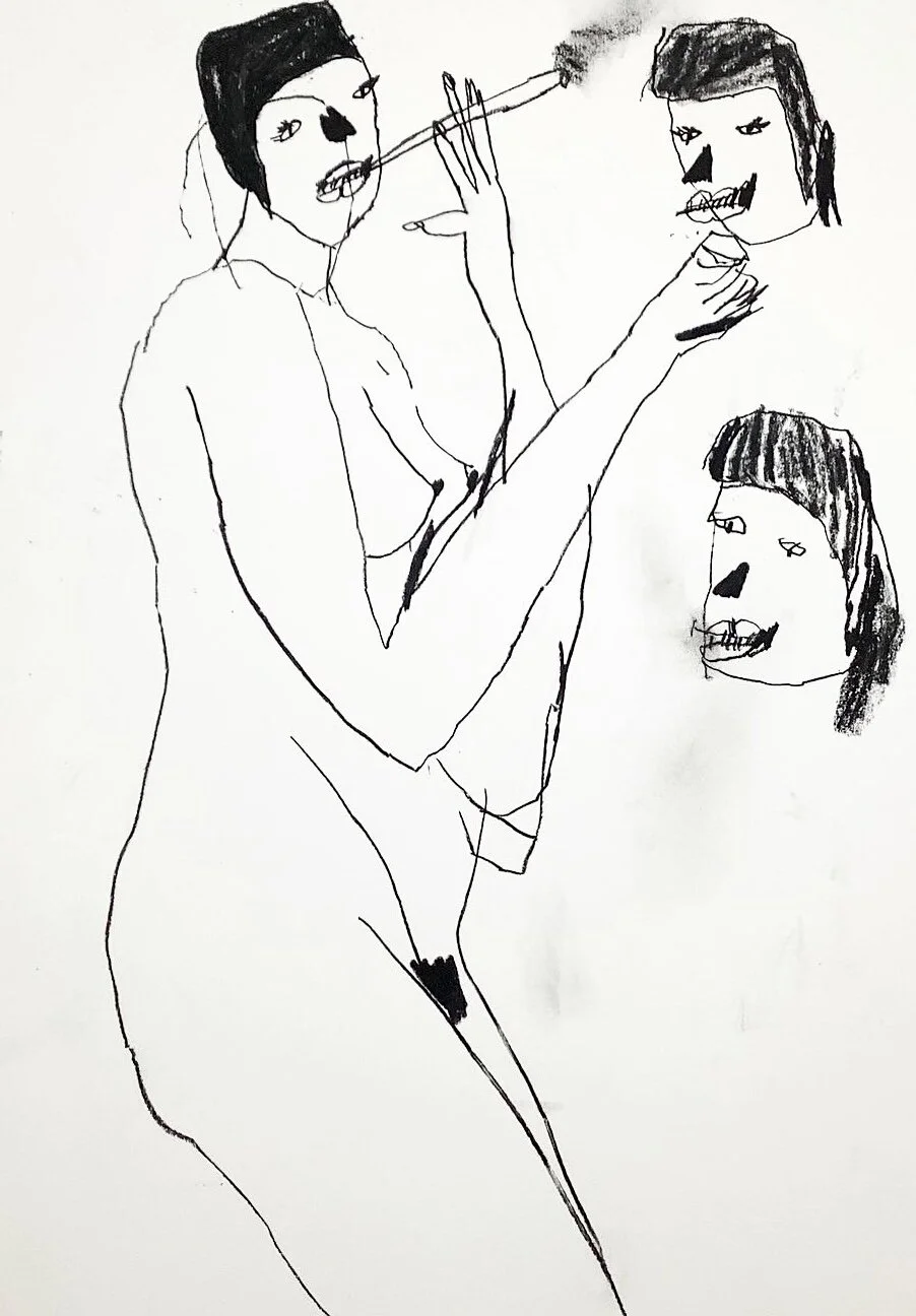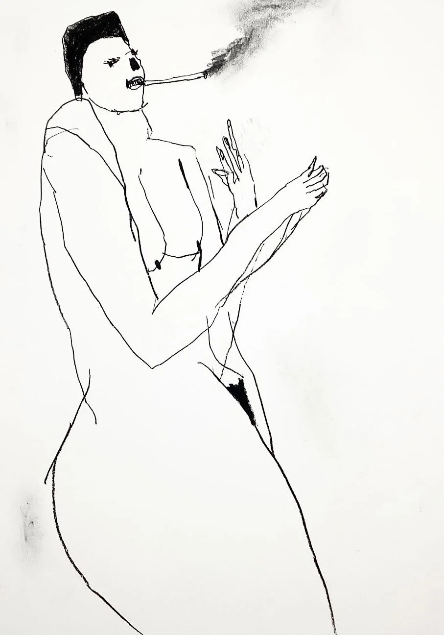 Contemporary Life drawing of woman with cigarette 2 by Artist Tracey Slater