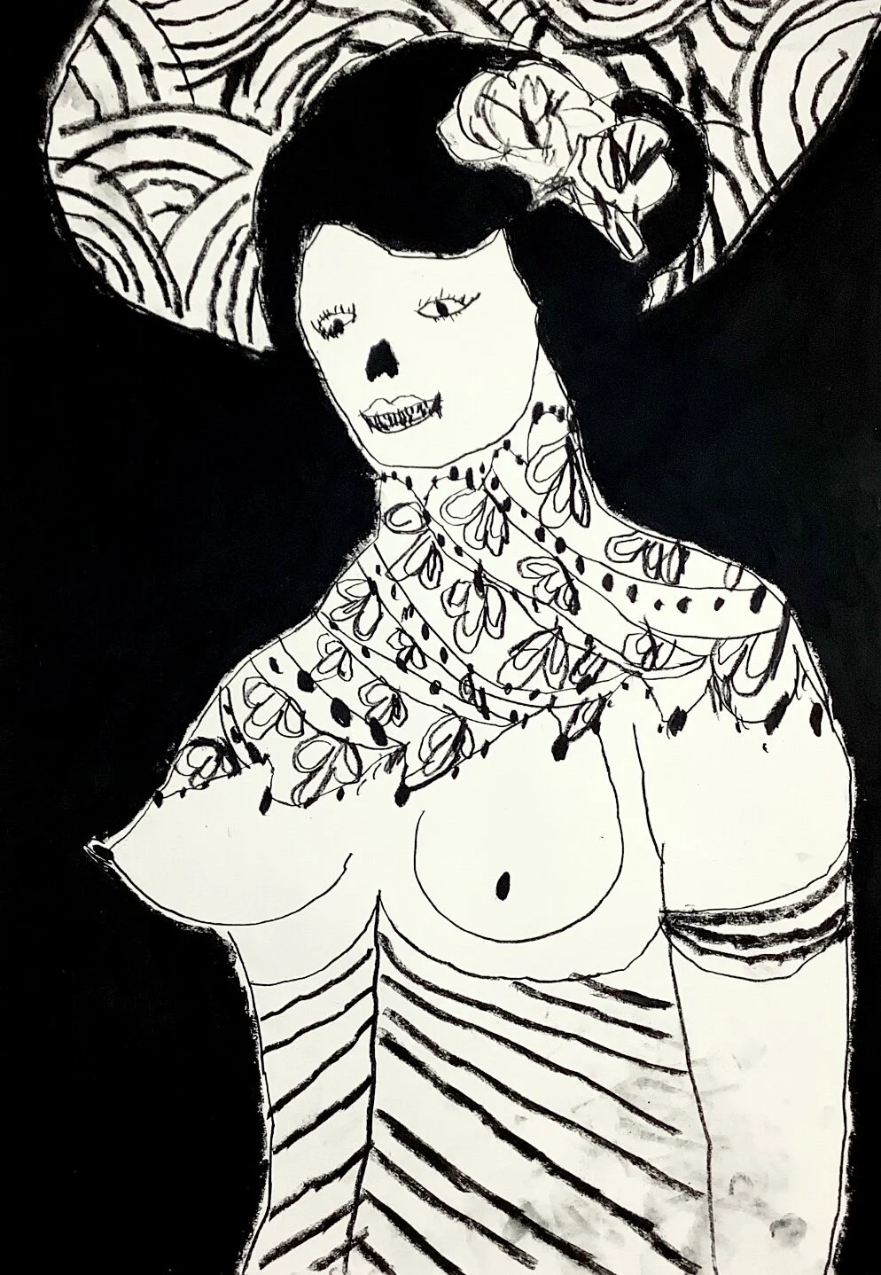 Contemporary life drawing woman with ropes in mouth by Tracey Slatet